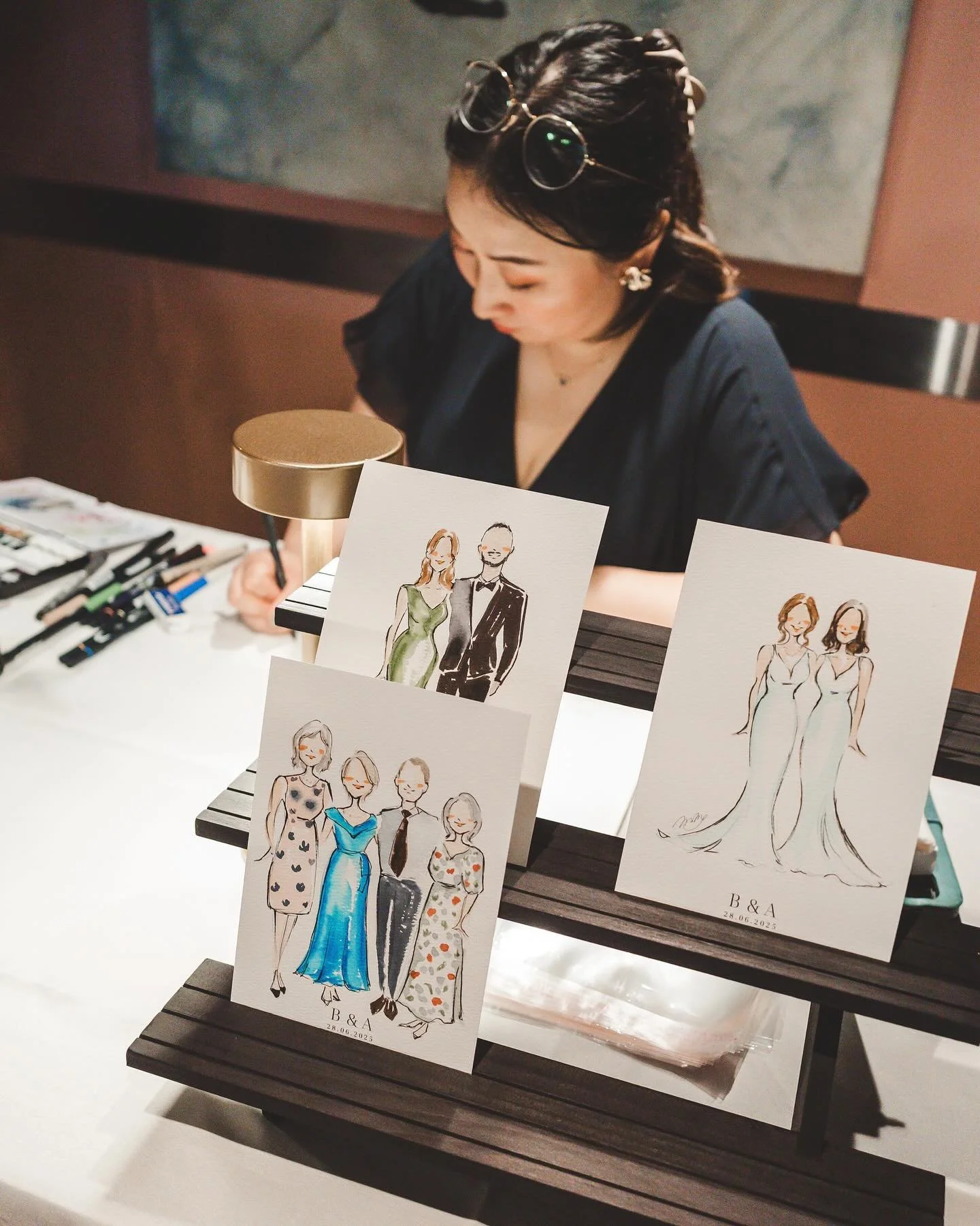 As a passionate watercolor artist, I love bringing cherished moments to life through Live Guest Portraits, Live wedding painting, Fine Art commissions,
